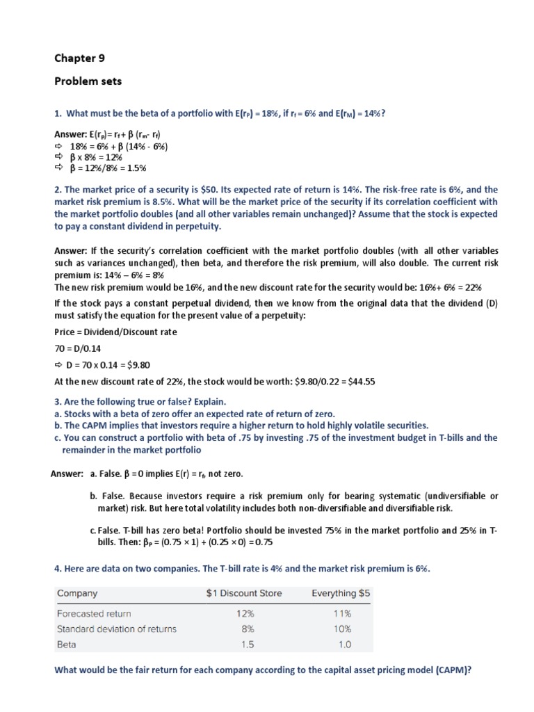Selected Q A Chapter 09 Pdf Capital Asset Pricing Model Beta Finance